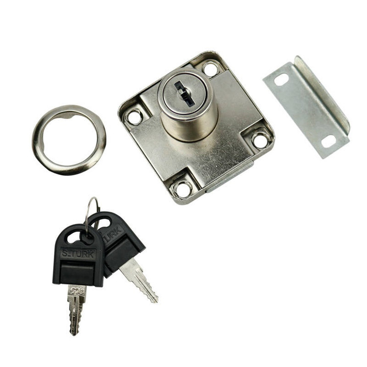 قفل تک پله ی ام دی اف s-turkیکی از بهترین و پرفروش ترین برند های قفل موجود در بازار می باشد که از کیفیت و دوام بالایی برخوردار است . این قفل مخصوص کشو های ام دی اف ، درب کمد ها و جاکفشی میباشد همچنین قابلیت نصب بر روی درب کمد های باشگاه و استخر را نیز دارد . قفل های کمدی در دو نوع تک پله و دوپله در بازار موجود می باشد که در نوع تک پله با چرخاندن کلید یک زبانه داخل درب یا کشو میرود و در نوع دو پله دو زبانه داخل درب یا کشو قفل می گردد
