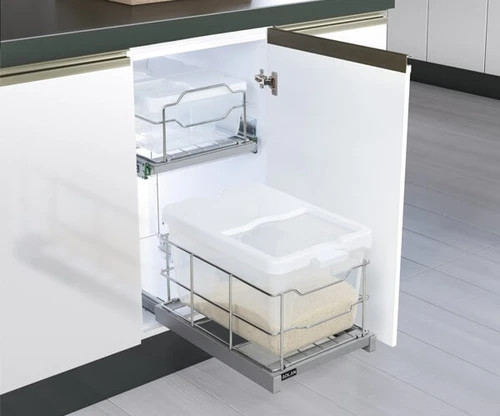 جا برنجی از مهمترین تجهیزات کابینت برای خانه هر ایرانی به حساب می آید.این محصول پرکاربرد از طریق دو ریل ساچمه ای بسیار قوی به کف کابینت پیچ میشود و به راحتی از کابین خارج شده و قابل دسترس میباشد.این محصول شامل یک مخزن پلاستیکی تهیه شده از مواد نو میباشد که ظرفیت 20کیلویی دارد.