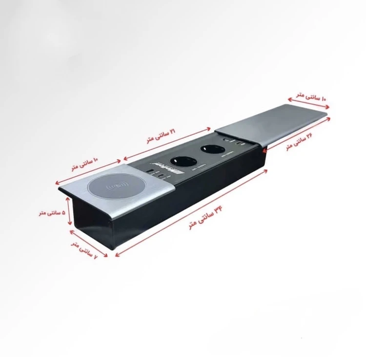 دارای درب کشویی الومینیومی می باشد که در مواقع عدم نیاز کشیده شده وسوکت ها و پورت ها را مخفی میکند