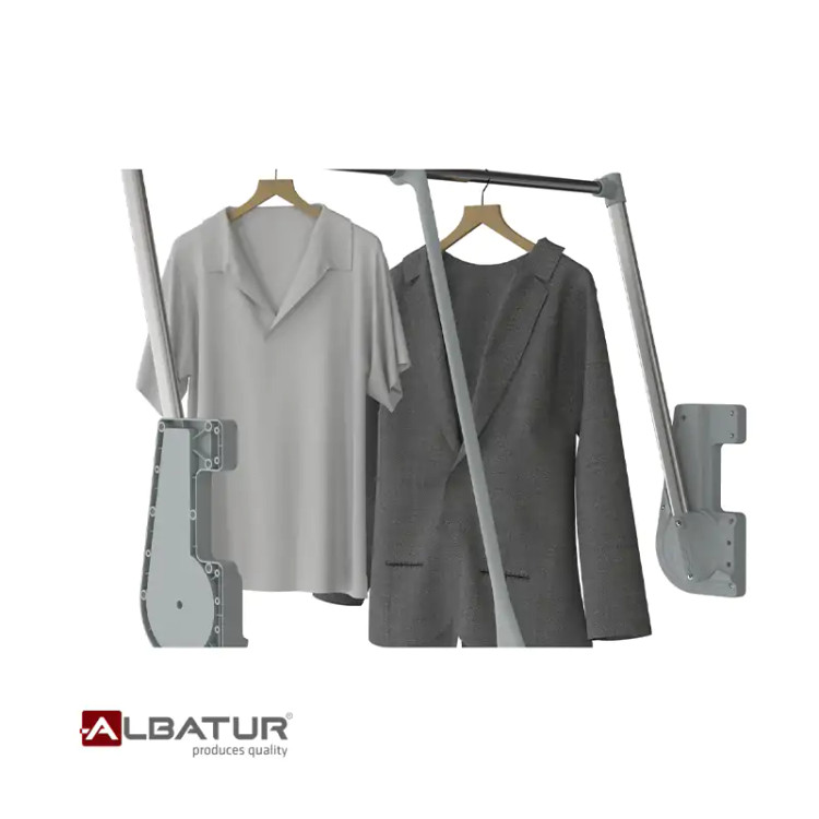 در صنایع آلباتور، ما با سیستمهای رگال آسانسوری خود که هم کارایی و هم زیبایی را به کمدهای شما میافزایند، زندگی شما را سادهتر میکنیم. این محصول که برای دسترسی آسان به لباسها در کمدهای مرتفع طراحی شده، به لطف ساختار تلسکوپیاش، متناسب با عرض کمد شما قابل تنظیم است. رگال آسانسوری ما که به عنوان یک آویز لباس مدرن طراحی شده، کارایی را با طراحی شیکی که به زیبایی کمد شما میافزاید، ترکیب میکند.