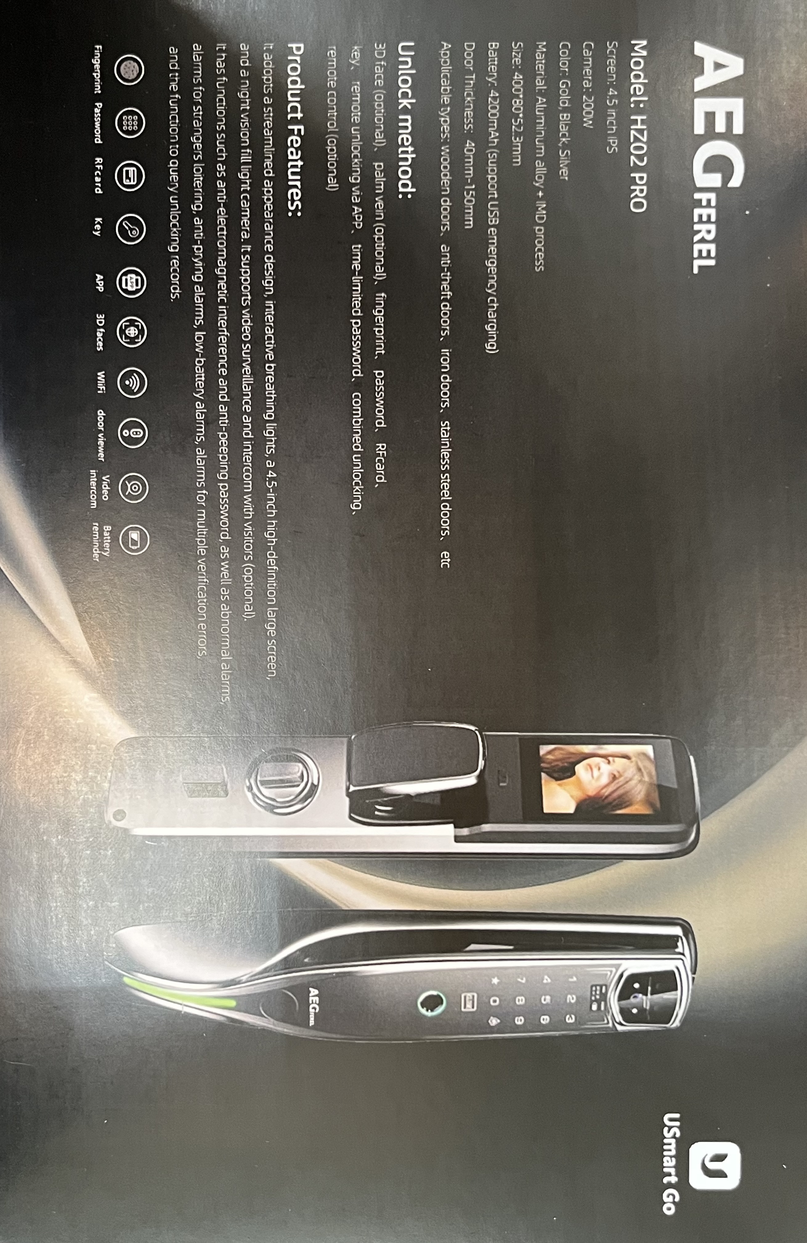 این قفل هوشمند با بهرهگیری از *تشخیص چهره* و *اثر انگشت، بالاترین سطح امنیت را ارائه میدهد. دسترسی از طریق **تگ، کارت، رمز عبور دائم و موقت* (توسط نرم افزار) نیز ممکن است. این محصول مجهز به *دوربین چشمی و مانیتور* برای مشاهده مراجعین، *کلید مکانیکی* کمکی و *قفل شببند* داخلی است. اتصال به *نرم افزار Wishome امکان *گزارشگیری از ترددها* و کنترل دستگاه از راه دور را فراهم میکند. قابلیت اتصال به *وایفای، استفاده از یک **باتری لیتیومی قابل شارژ* و *هشدار اتمام باتری* از دیگر ویژگیهای برجسته این محصول است. ⚠️ هزینه نصب به عهده مشتری می باشد